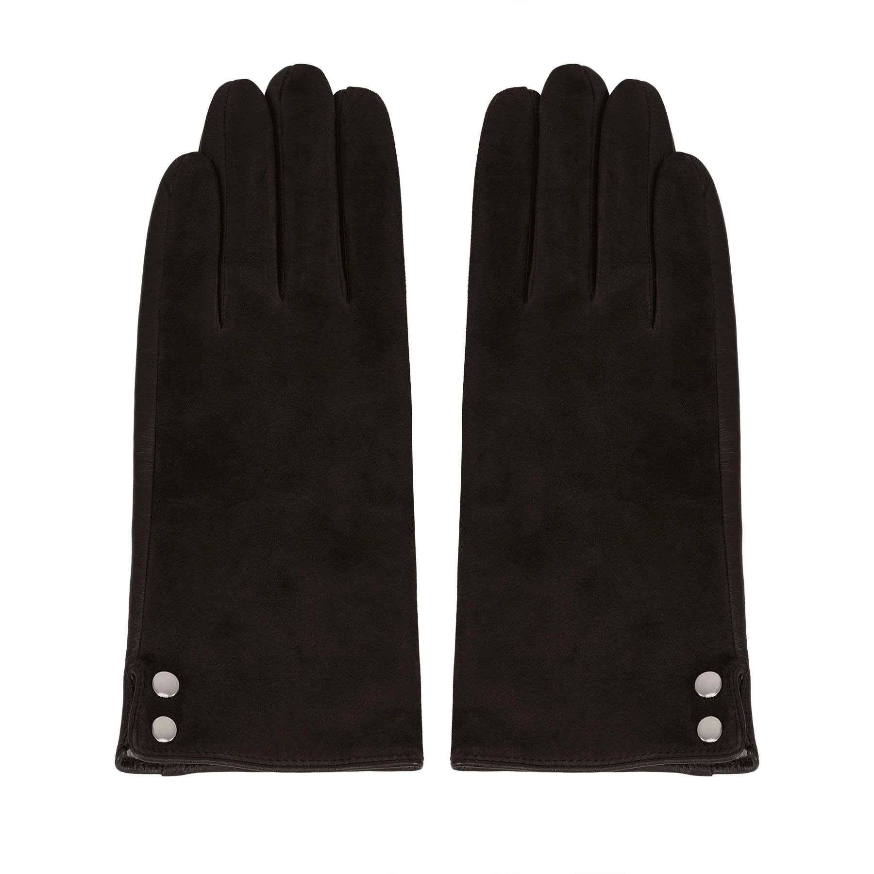 The gloves from the new POTAMY PREMIUM collection feature contrasting textures in a coffee color: natural velour outside and smooth natural leather inside. The insulated lining made of soft wool retains heat, and the laconic design is complemented by small silver buttons. A special advantage of the model is the ability to use a phone with a touch screen without removing the gloves from your hands. Velour is a delicate material that requires careful handling. Minor dye transfers from dark velours to light clothing, as well as from dark clothing to light velours, are possible.