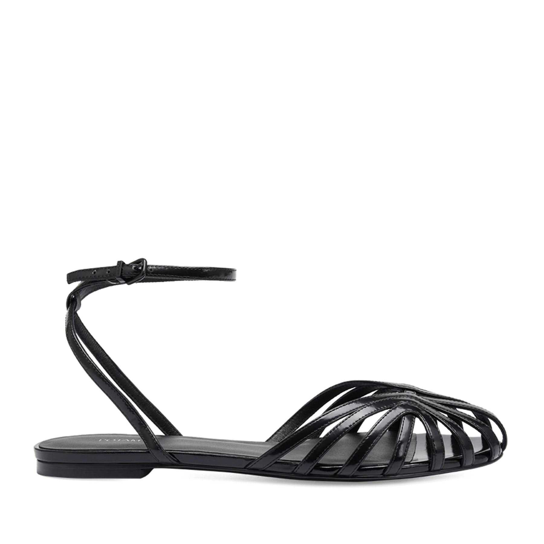 The combination of numerous soft straps makes the sandals stand out, the basic black color and lack of decoration balances the unusual shape. The natural leather sandals are designed to add romantic sophistication to your everyday routine. The thin ankle strap secures the foot and provides comfort when walking. The model forms an ideal combination with the light and airy outfits in the boho style and integrates perfectly into the usual casual wardrobe.