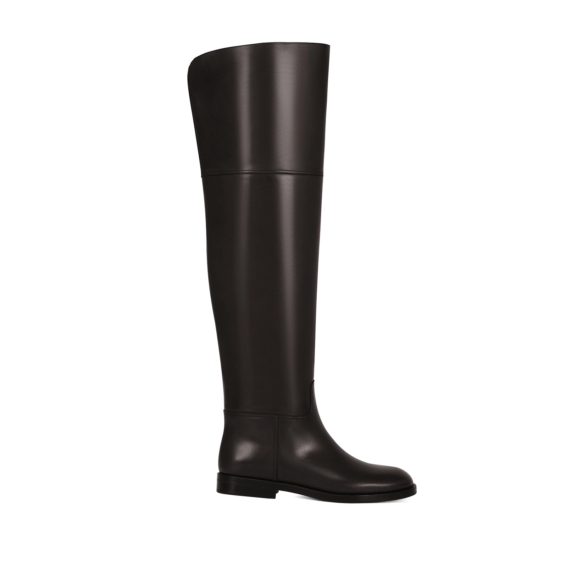 Les cuissardes classiques restent un incontournable de la garde-robe automne/printemps. Dans la nouvelle collection, ce modèle est réalisé en cuir naturel marron foncé, qui épouse délicatement la jambe. Sa semelle plate et sa tige large offrent un confort optimal au quotidien. Une option idéale pour composer des looks élégants avec jupes et robes durant la saison de transition.