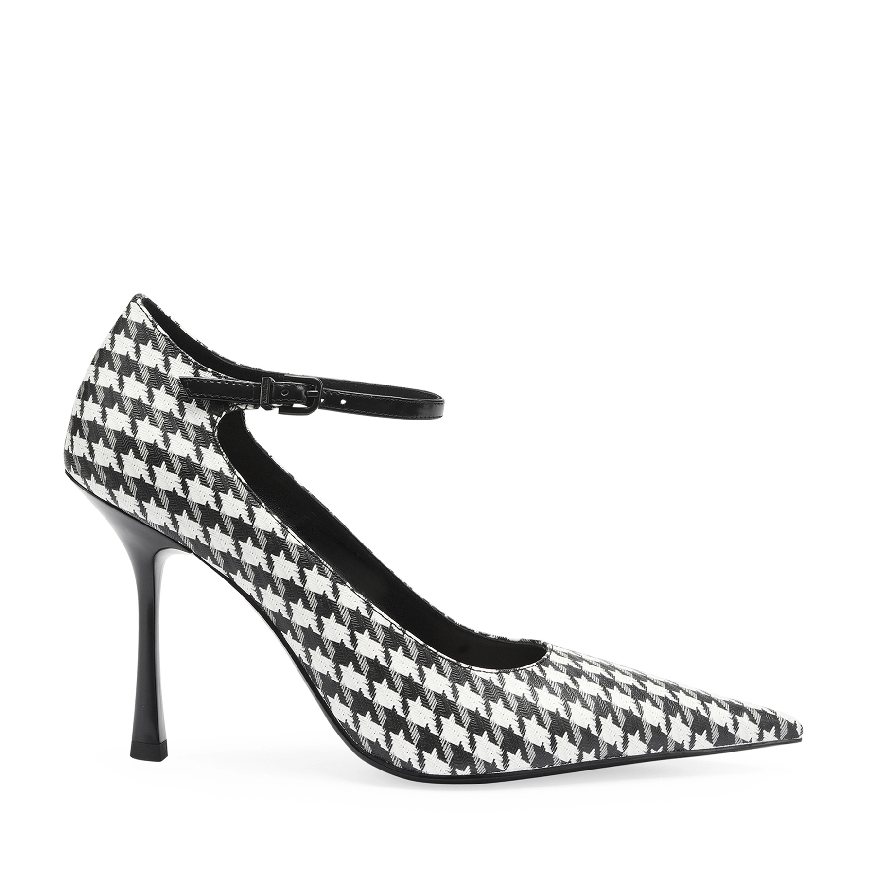 Pantofi cu un accent care vă scoate în evidență - un imprimeu pied-de-poule, care conferă simultan modelului un farmec unui stil preppy și nu-i schimba interpretarea clasică, potrivită în orice situație. O curea elegantă care face referire la silueta iconică Mary Jane fixează în siguranță piciorul și creează un contrast la modă între motivele naive și elegante. Partea alungită vârfului evidenţiază și se potrivește cu forma geometrică a tocului. Pantofii sunt din piele naturală, bicomponent și rezistent la abraziune.