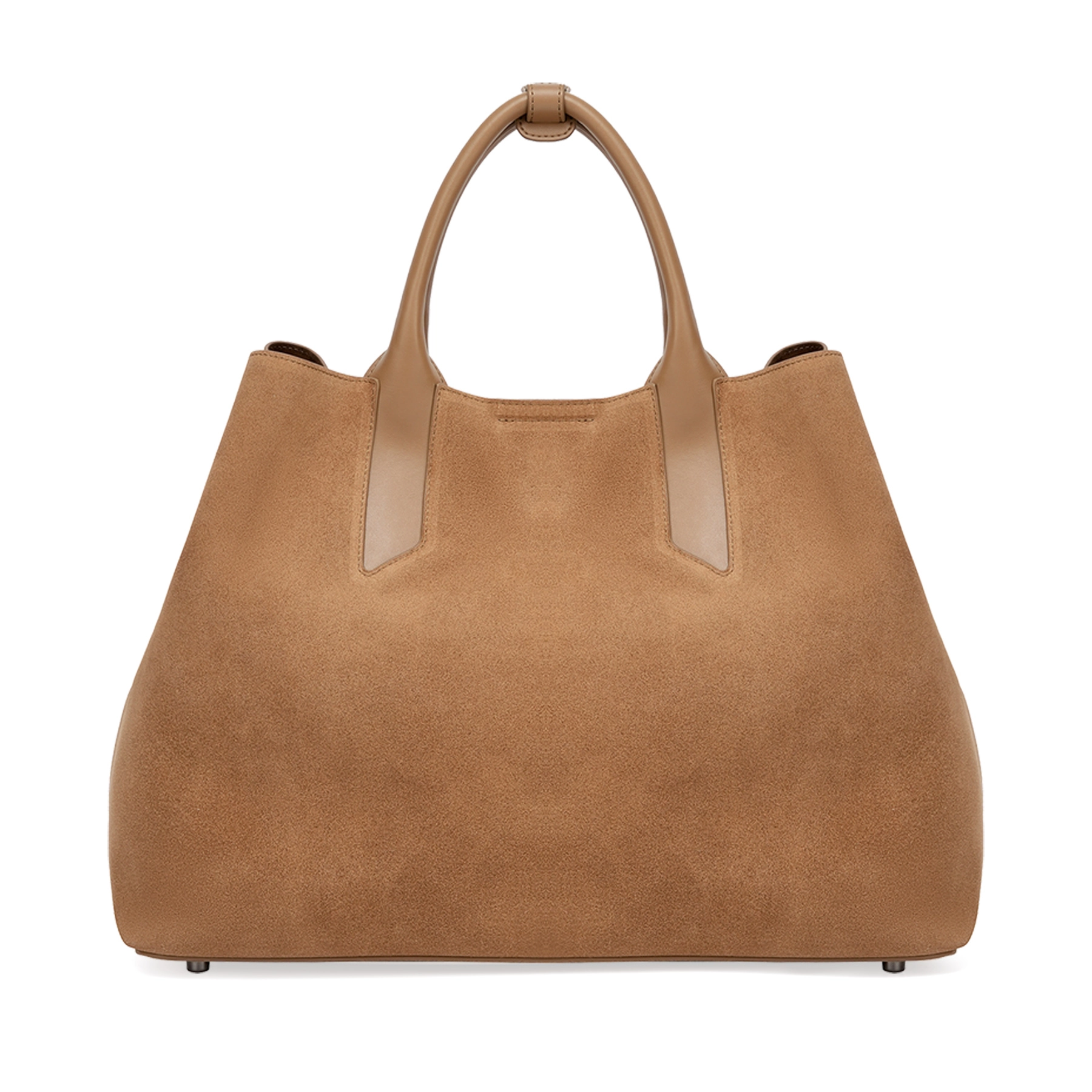 Este greu de imaginat o garderobă modernă, funcțională fără un shopper spațios. Echipa de designeri a realizat modelul din piele naturală moale despicată, tăbăcită fără crom într-o nuanță de lemn natural. Producerea acestui material nu poluează mediul și economisește apă. Pentru o mai mare funcționalitate, geanta este echipată cu o curea lungă inclusă.
