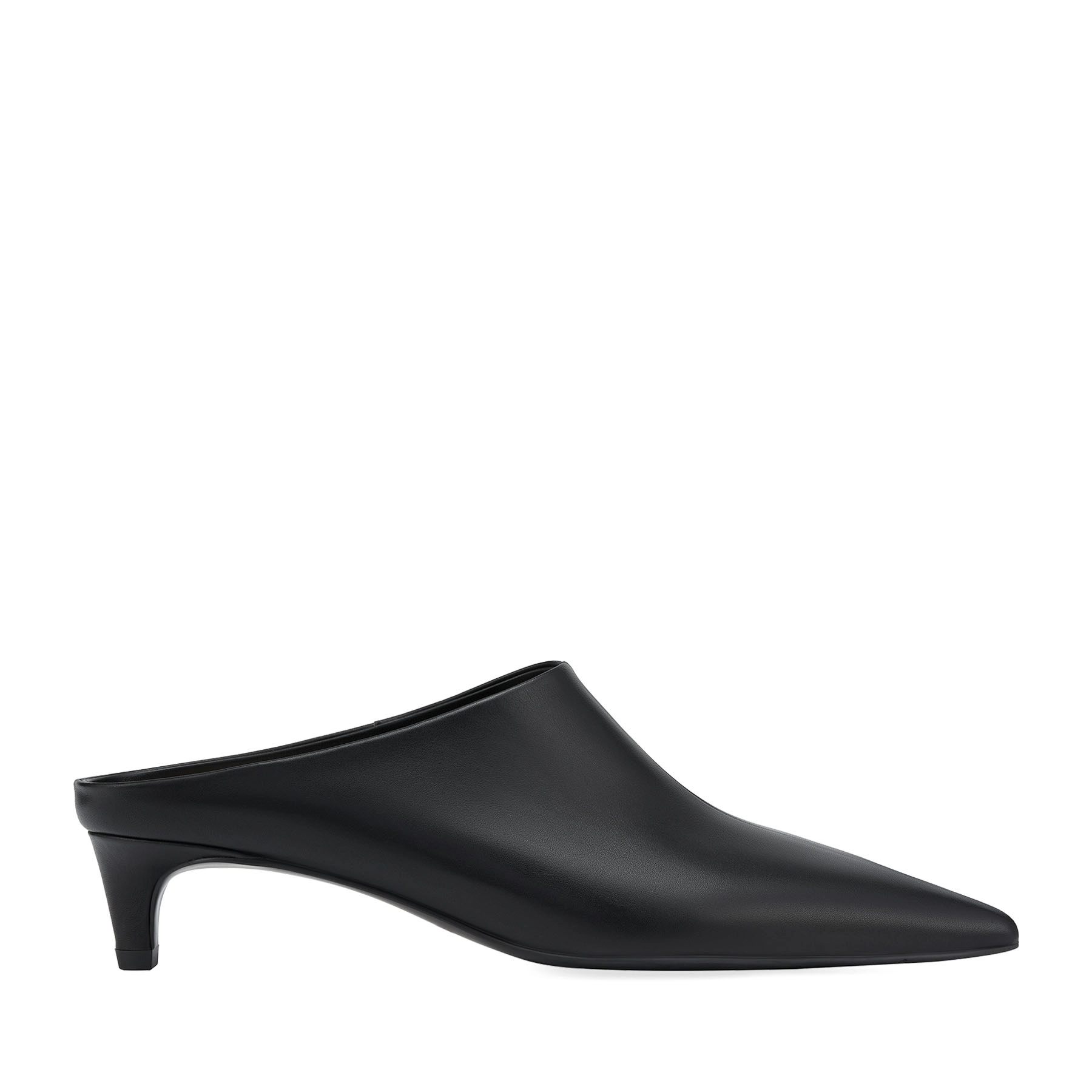 Pantorii mules care vor oferi oricărei combinații o interpretare avangardă. Modelul din noua colecție este confecționat din piele naturală neagră. Accentul modelului este dat de designul - o combinație între un vârf ascuțit, toc kitten și călcâiul deschis. Designul laconic, fără accente, face modelul minimalist și vă permite să-l combinați în diferite look-uri: de la reținut la experimental. Un toc mic și un branț confortabil din piele naturală moale vă vor permite să vă simțiți confortabil pe tot parcursul zilei.