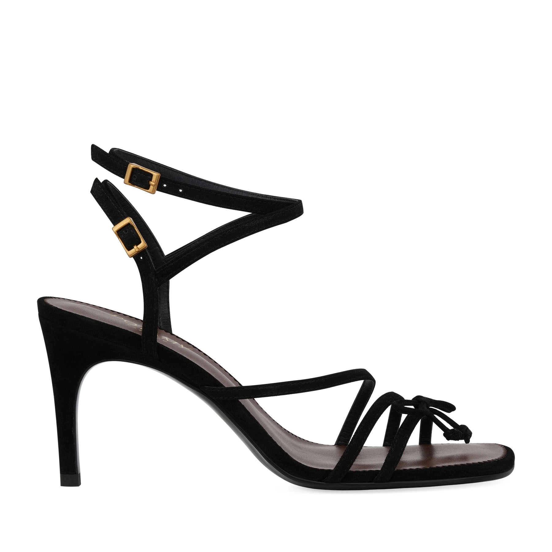 Sandalele POTAMY PREMIUM combină o silueta clasică cu detalii expresive. Modelul este deosebit de impresionant datorită multitudinii de bretele subțiri care se termină cu șireturi de accent. Pentru a crea modelul, a fost folosit velour natural de culoare neagră universală. Designul este completat cu un toc stiletto elegant.