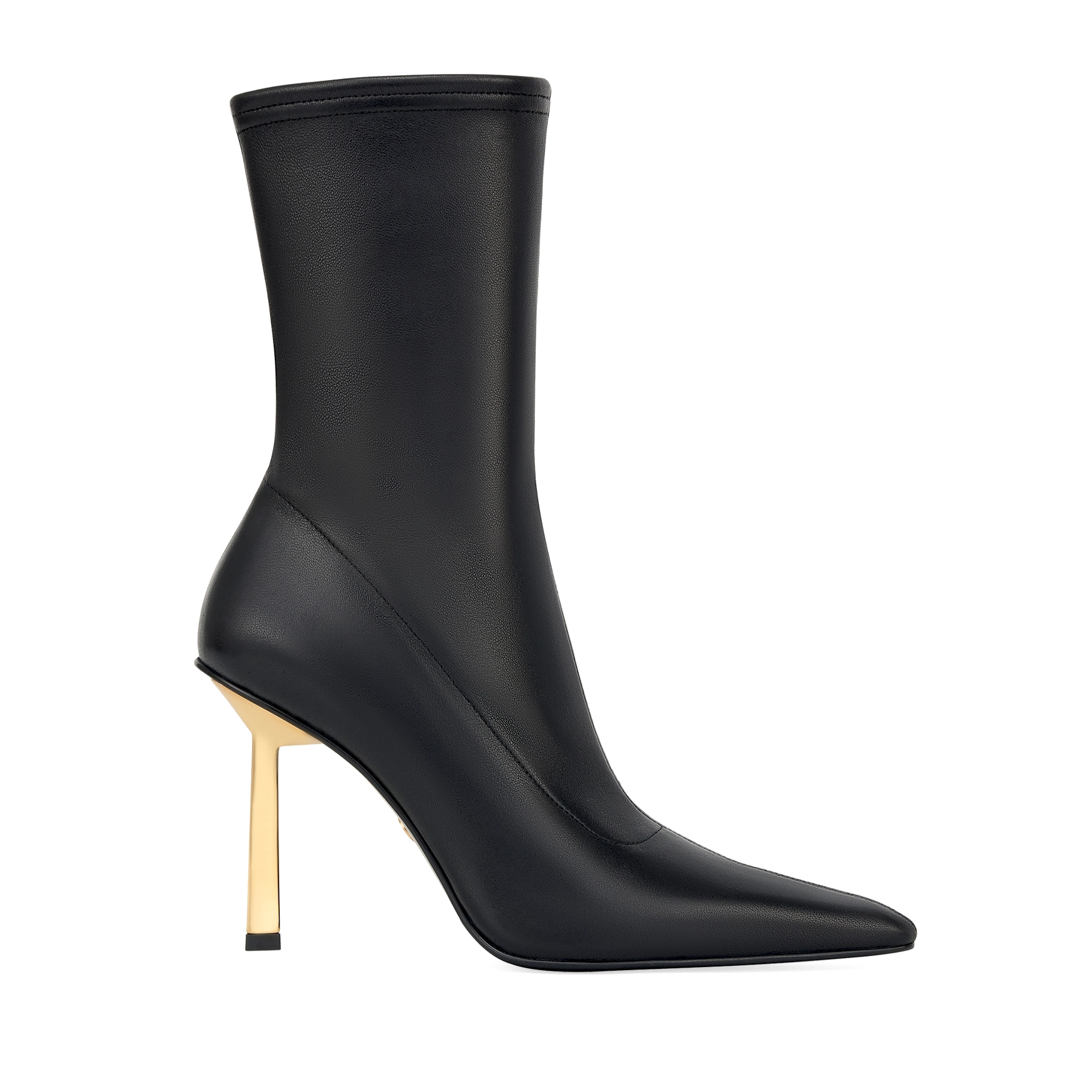 Ghete deosebite din colecția POTAMY PREMIUM, în centrul atenției fiind tocul stiletto cu formă neobișnuită. Le-am realizat într-o nuanță metalică aurie, în contrast cu culoarea neagră a pielii naturale. Materialul elastic se mulează confortabil pe picior și face silueta deosebit de elegantă.