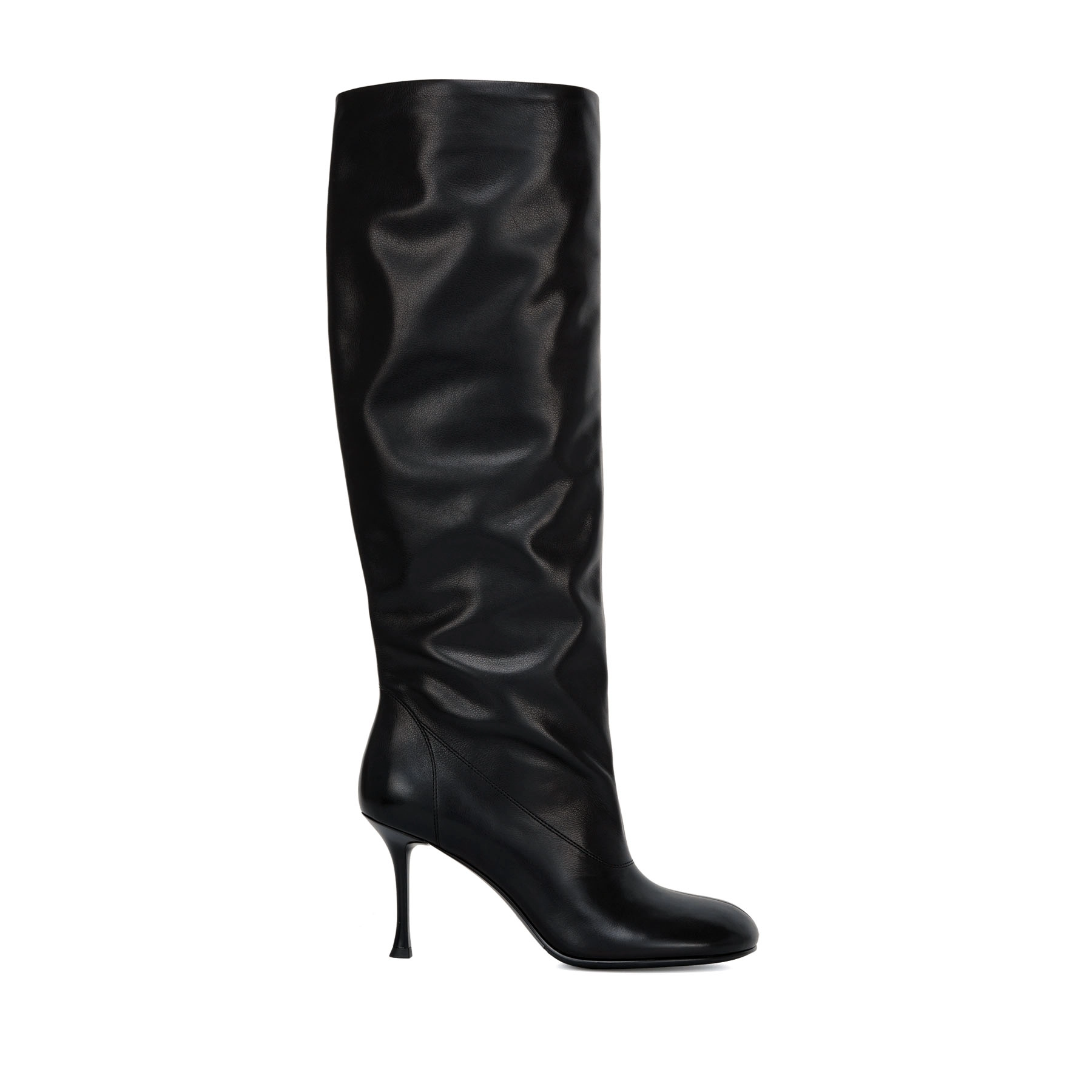 O alternativă la cizmele clasice, acest model prezintă o siluetă nouă, avangardistă. Echipa de designeri a completat perechea cu un vârf rotunjit, un toc subțire cu flecuri bicomponente rezistente la abraziune, și cu carâmb lat. Stilizează-le într-un mod clasic sau impresioneaza prin faldurile spectaculoase.