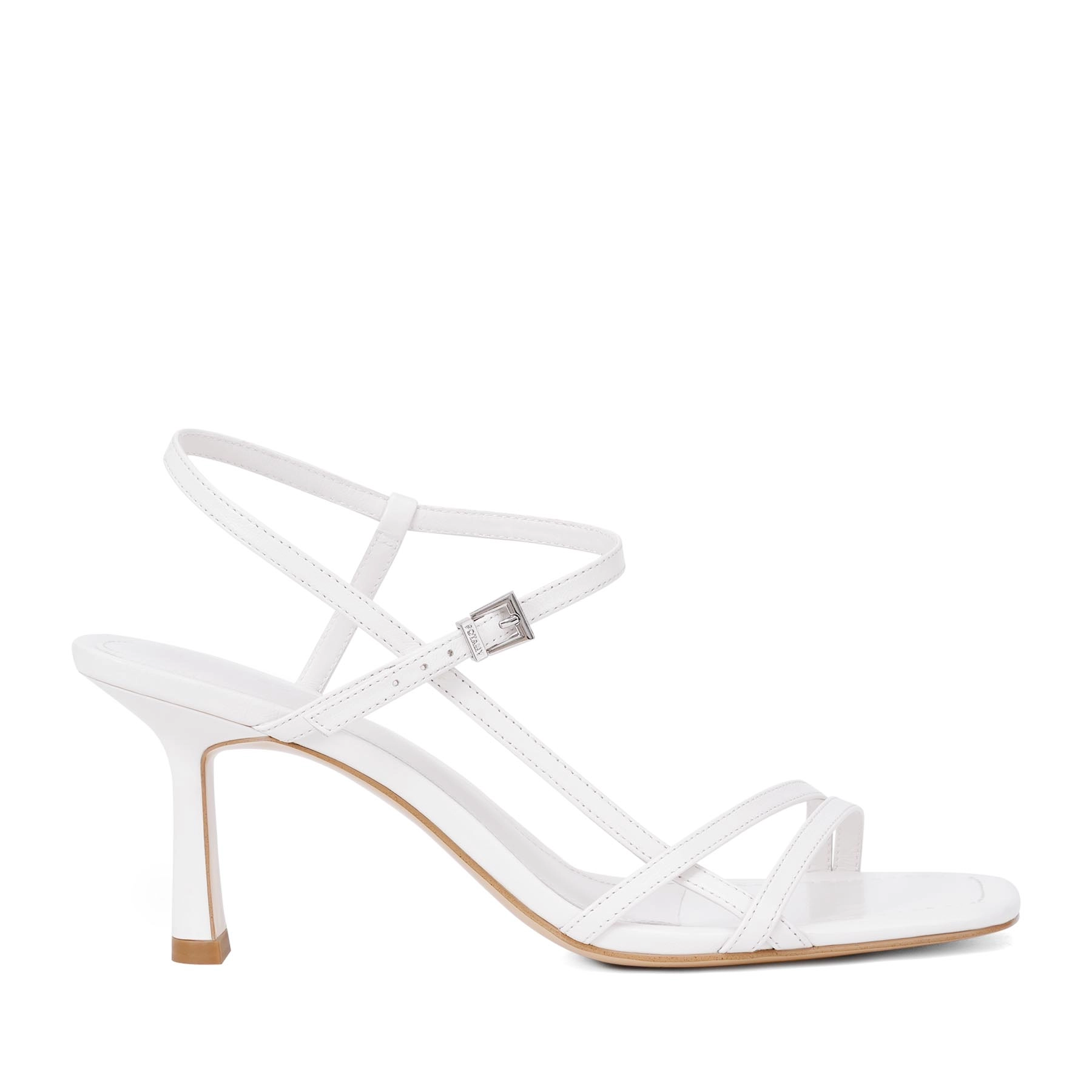 Vârful pătrat este o aluzie la estetica anilor '90, un element de bază al designerilor de câteva sezoane. Acest model din piele naturală albă îl combină cu un toc subțire și un design minimalist, creând un aspect modern și elegant. Tocul cu flecuri bicomponente rezistente la abraziune și acoperit cu același material ca și partea superioară, făcând silueta integrală și vizual mai ușoară. O închidere cu cataramă reglabilă asigură o potrivire confortabilă. Ideal pentru ținute elegante de vară și ieșiri de seară.